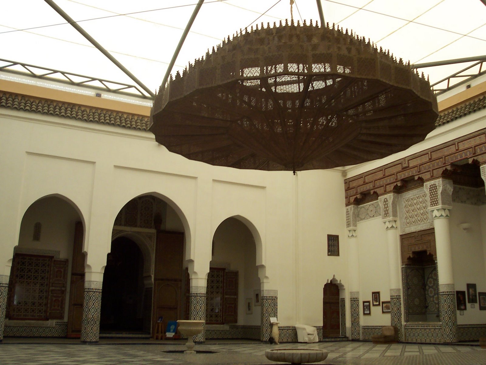 The lobby of the Marrakech museum held the hugest and most impressive brass chandelier one could possibly imagine. Recesses that once served as fountains held audio speakers that played luscious and hypnotic oud music which I would happily have bought had it not cost even more than it would here in New York.