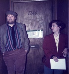 I’m not entirely sure how I survived the 80s language poet scene given that minimalism and neutrality were pretty much the order of the fashion day. There is a funny picture you took of me then, Laura, that shows me trying to sort of fit in, with that awful 80s bob, a (ugh) button-down white cotton shirt, and a 40s suit jacket about a thousand sizes too big. That was a very difficult fashion period for me and I’m grateful to have passed through it. (It occurs to me, though, that Ron looks very dapper here, indeed!)
