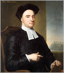 Here’s Bishop Berkeley in a matching black satin toque-thingy and overcoat, with, I don’t know how to describe it technically, the most wonderful forked cravat. He looks happier than Locke, empirically speaking.