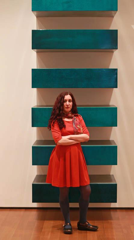 Here I stand in front of Donald Judd’s UNTITLED(STACK) 1967…The Museum of Modern Art staged a poetry event entitled Transform The World! Poetry Must Be Made By All! as part of Kenneth Goldsmith’s Poet Laureate program. 4th Floor Painting and Sculpture II. Photo:copyright Lawrence Schwartzwald(No reproduction without express permission) (I obtained express permission) (by the way I don’t think I usually stand like that; Lawrence told me to cross my arms).